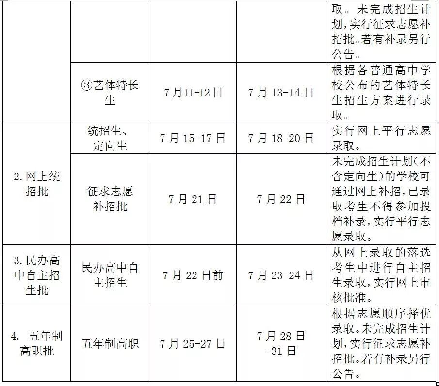 7月25日0点至7月27日24:00,全市五年制高职网上填报志愿。实行院校专业平行志愿投档录取。